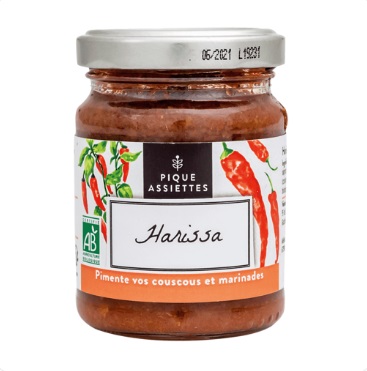 La puissance du piment rouge dans un condiment ! L’harissa Bio Pique-Assiettes est une recette forte et bien relevée, sans pour autant agresser le palais. Les piments sont pilés au mortier avec de l’ail, de l’oignon, des tomates, des carottes. Son parfum très riche pimente vos couscous, ragoûts et marinades.